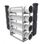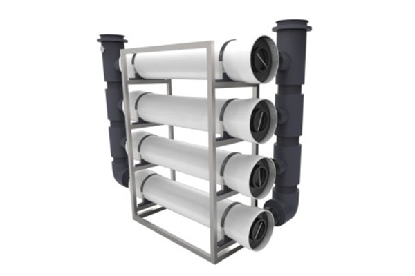 The modular skid-mounted FRP system combines multiple single high flow housings on a common skid frame, configured to match site dimensions and required flow capacity. It delivers 50% lower equipment cost versus stainless steel, reduces installation footprint by more than 50%, and allows filter cartridge replacement without dismounting any pipeline.