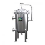 The multi-bag stainless steel filter housing handles high-volume filtration of viscous liquids using 3 to 12 filter bags per vessel. Its davit-style cover enables fast bag changeout, and inside-to-outside flow direction means retained solids collect inside the bag for clean and easy removal.